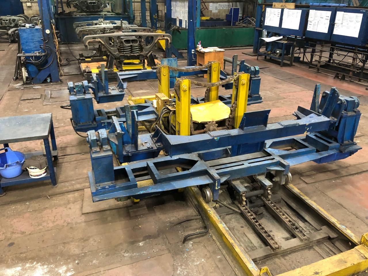 Кантователи для боковин в разведенном положении предназначены для осмотра и дефектоскопии. Кантователи имеют поворот на 90 град. в обе стороны. Для этого имеется механизм поворота с пневмоприводом.